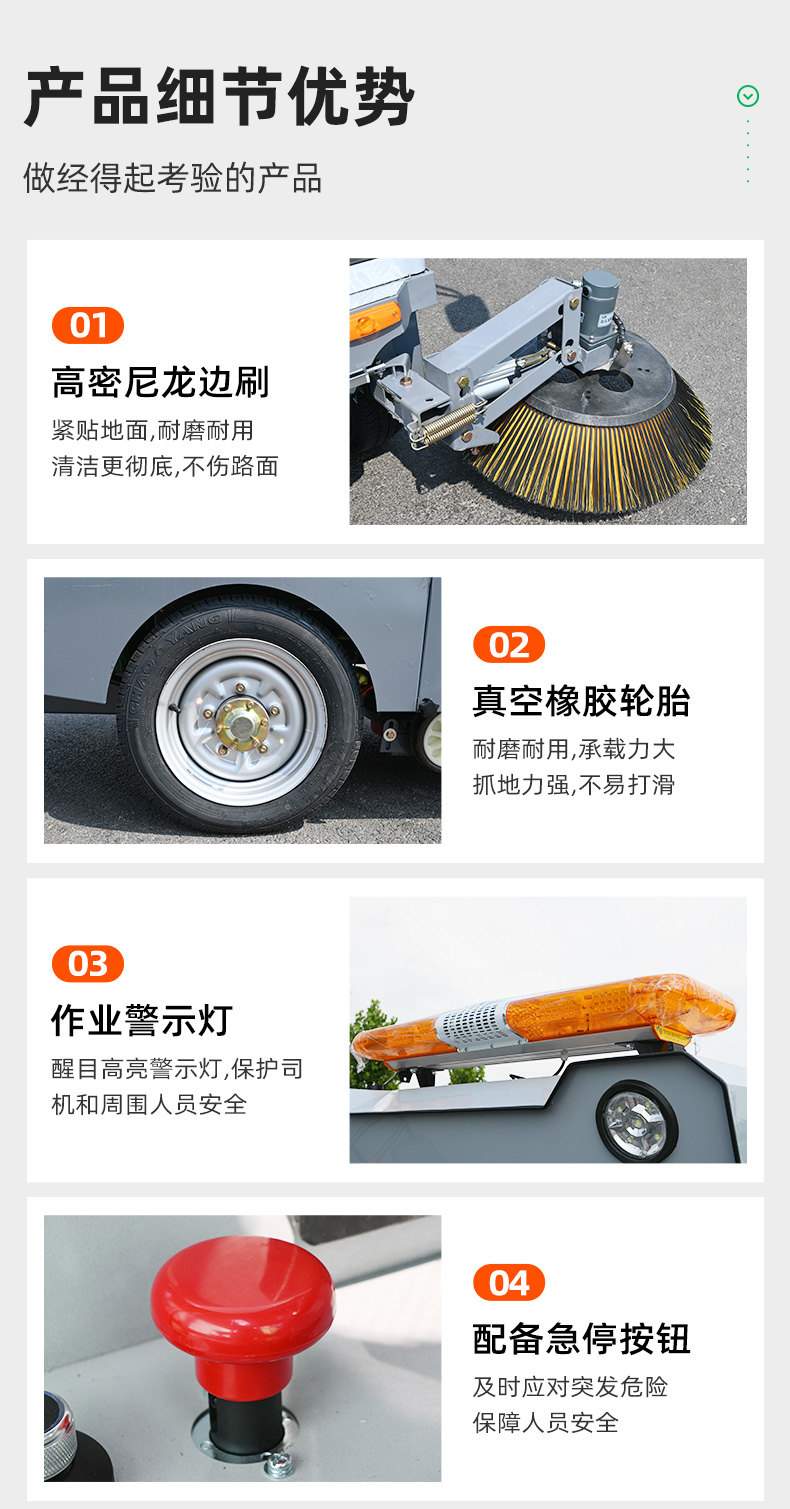 莱特LT-G86型全封闭四轮驾驶式扫地车,此车辆为纯吸款高性能车辆、无滚刷结构,使用效果更稳定。车辆具备智能语音系统,配备高压清洗和高压雾炮功能,清扫宽度2450mm,满电工作时间为3-5小时,工作效率30000㎡/h,采用的是特种车专用磷酸铁锂电池,配置长度4米可拆卸手持吸管,吸净率高,作业速度快。后置240L标准垃圾桶,收集满灰尘垃圾之后,可以直接更换垃圾桶,效率高,无需人工倾倒垃圾。高压雾炮射程可达10米以上,可对作业环境高效的降尘,还可以用于绿植养护和环境消杀。高压水枪可以对地面顽固污渍进行清洁,还可以冲洗路牙石,为绿植浇水,工作之余,还可以用高压水枪清洗车辆。应用场景为:厂区、车间、公园、街道、物业小区、码头、学校、机场等需要大面积清扫的区域区域。